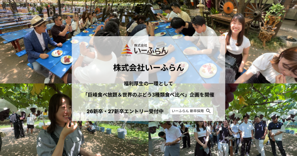 【いーふらん】福利厚生の一環として社内バスツアーを実施 「巨峰食べ放題&世界のぶどう3種類食べ比べ」企画を開催
