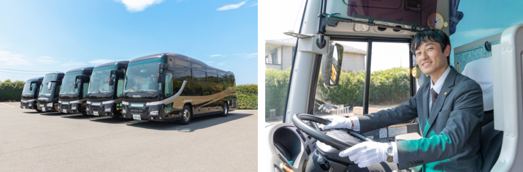 いーふらんでは現在5台のリムジンバスを所有しており、バスツアーをはじめとする様々なイベントで大活躍しています。運行は、社内の車両管理部に所属するプロのドライバーが担当するため、社員はいつでも安心・安全にイベントを楽しむことができます。