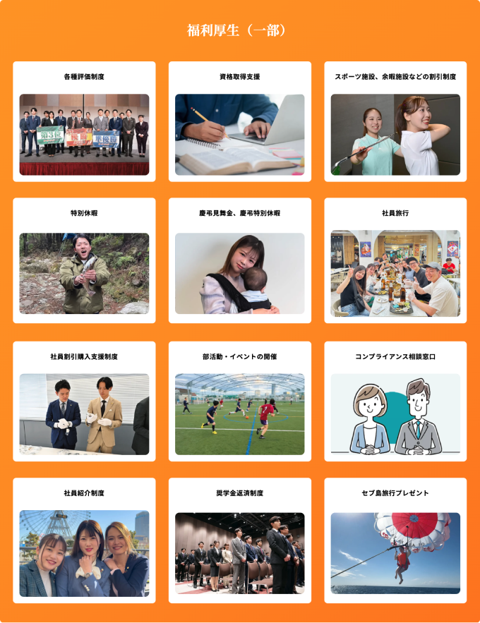 当社では、「日本で一番福利厚生の多い企業」を目指し、福利厚生の拡充を推進しております。